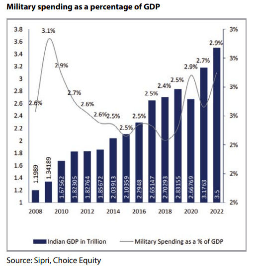 Increasing indigenization, Domestic defence procurement, Higher share of electronics in warfare