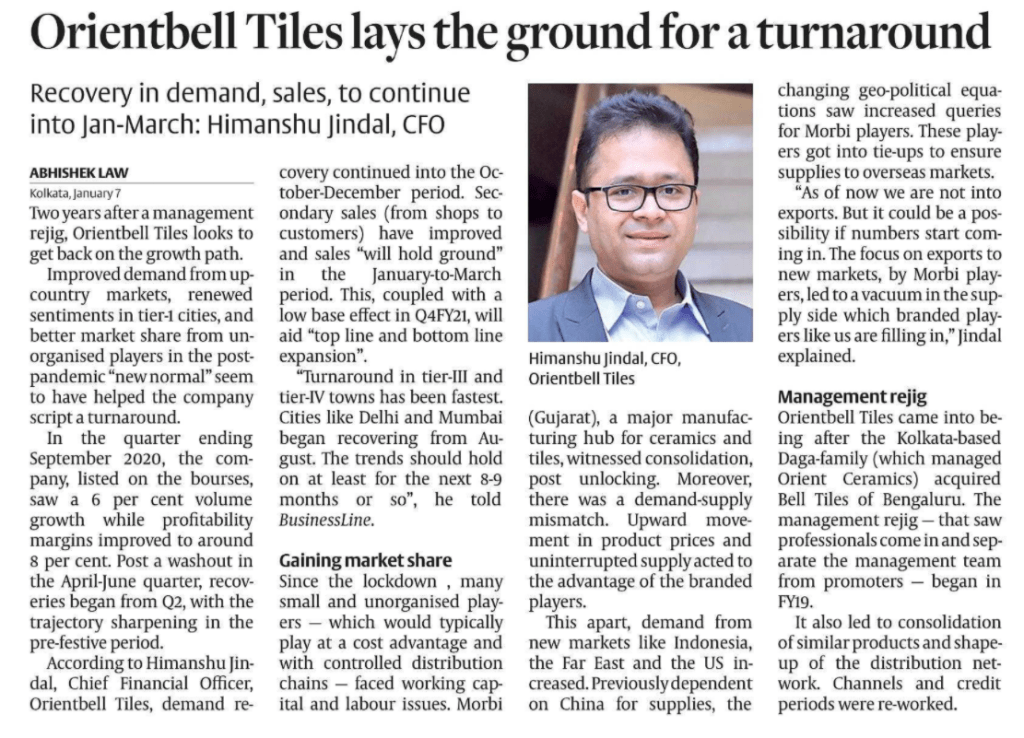 Stocks Orientbell Tiles : Turnaround? January 15, 2021January 13, 2021 Its real ALPHA Investor Presentation Q2FY21 Investor presentation Q2FY21 Source Business Line Share this: Click to share on X (Opens in new window) X Click to share on Facebook (Opens in new window) Facebook More Click to share on WhatsApp (Opens in new window) WhatsApp Click to email a link to a friend (Opens in new window) Email Click to share on Telegram (Opens in new window) Telegram Like Loading... Share this: Click to share on X (Opens in new window) X Click to share on Facebook (Opens in new window) Facebook More Click to share on WhatsApp (Opens in new window) WhatsApp Click to email a link to a friend (Opens in new window) Email Click to share on Telegram (Opens in new window) Telegram Like Loading...
