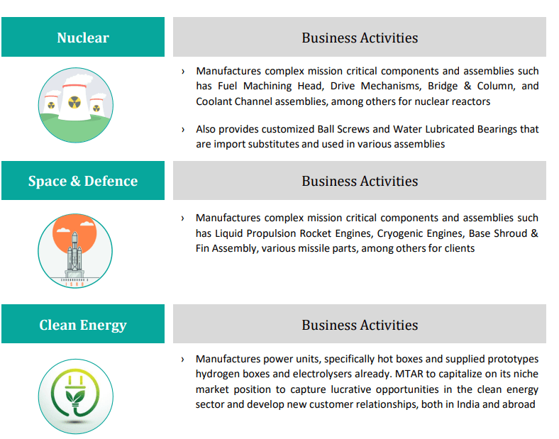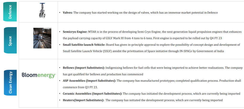 Strong Diversified portfolio of critical and differentiated engineered products in emerging domains of Nuclear, Space,Defense, Clean energy , fuel cell etc
